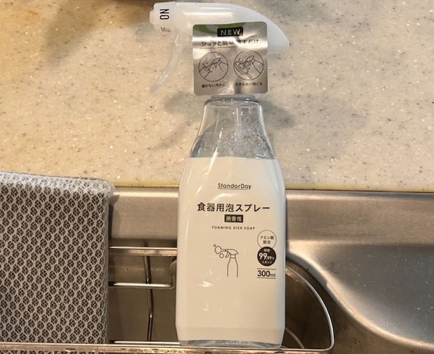コスモスのプライベートブランド「StandarDay(スタンダーデイ)」から発売されている、食器用泡スプレーは、シンプルで洗練されたおしゃれなデザイン。