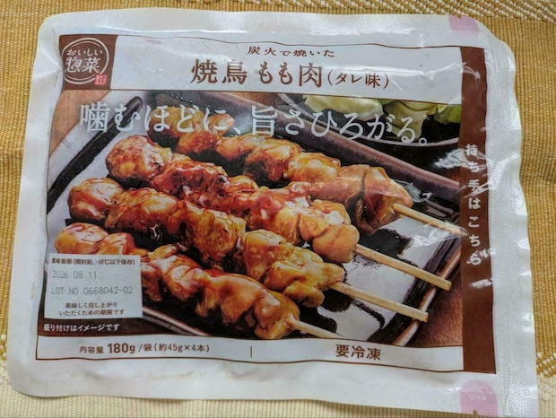 ドラッグストアコスモスの「焼鳥もも肉」は、4本入り348円というお手頃価格。