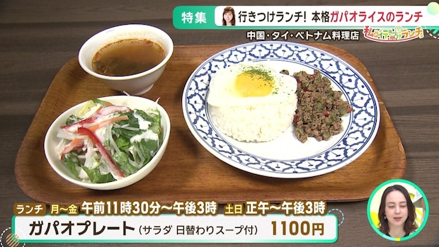 【おすすめメニュー】ガパオプレート(1,100円)