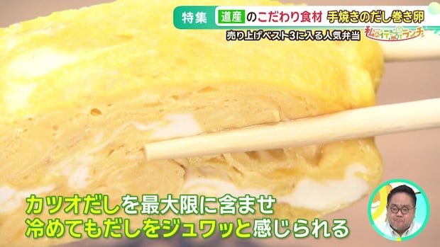 小俣さんが「あれば必ず買う」と断言するのが、このボリューム満点のお弁当。蓋を開けた瞬間に目に飛び込んでくるのは、お弁当の半分を占拠するかのような巨大なだし巻き卵です。