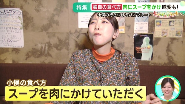 何度も通う小俣さんが編み出した独自の食べ方が、「日替わりスープを少しだけお肉にかける」こと。