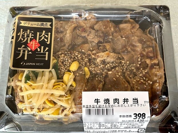 この「牛焼肉弁当」は、牛肉をたっぷり使っているのに、430円(税込)です。