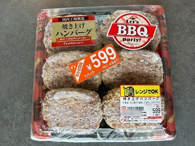 店頭でも販売されているオリジナルブランドの「ジャンボハンバーグ」が入っていて、重さはなんと189g!ちなみに横は10.5cmでした。