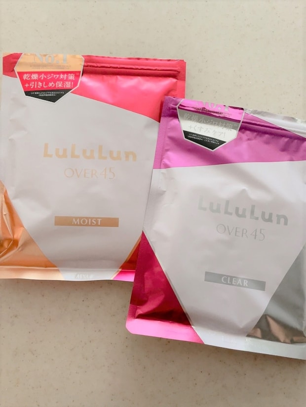 ルルルンOVER45 カメリアピンク(モイスト)、同 アイリスブルー(クリア) 7枚入り ¥550、32枚入り ¥1,980
