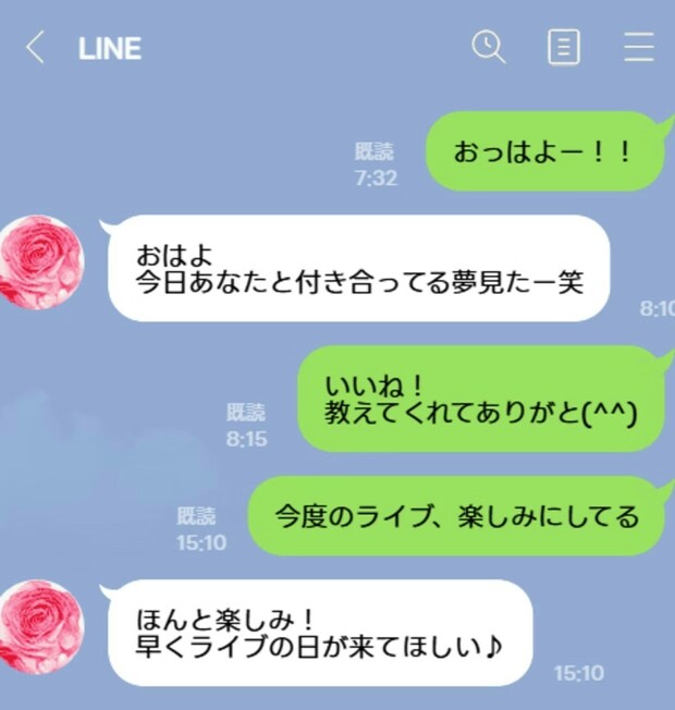 夫からおはよー!って送ってて、ほぼ毎日やりとりしてます。内容は他愛もないことですが、2人で飲みに行ったり今度ライブに行くと言ってましたがその女と一緒に行くようです。決定的な不倫の内容はないですが、「〇〇と付き合ってる夢見たー笑」「いいね教えてくれてありがとう」みたいなやりとりもあり気分悪いです