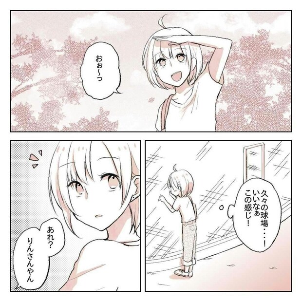 ゆーさんに誘われ、久しぶりに草野球に顔を出したりんさん。シゲさんにあいさつをすると、今日はどうして来たのかと言われてしまいます。りんさんは、ゆーさんに「シゲさんの彼女の話し相手に」と言われて来たのに、どうもシゲさんはそんなこと知らなかったようで…。