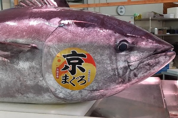 通常の養殖本まぐろは、20~30cmの幼魚にエサを与えて2~3年かけて大きくするのが主流だが、「京まぐろ」は、5~6月の産卵時の80kg級の天然本マグロを境港の先の日本海で捕らえ、水温の寒暖差が大きい京都府伊根湾の好条件のもとで短期養殖することで天然と養殖の良いところ取りをした本マグロに育つ。
