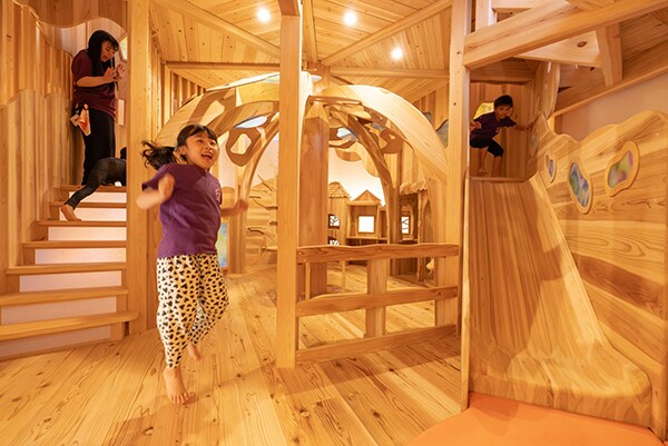 子どもの創造力を解き放つ新空間として、自然素材でつくられた大型遊具施設『Nekopu』。同遊具は大型木造三層の遊具施設であり、子どもたちが安心して遊べるよう、高さや空間などは国内の遊具安全基準を満たしている。