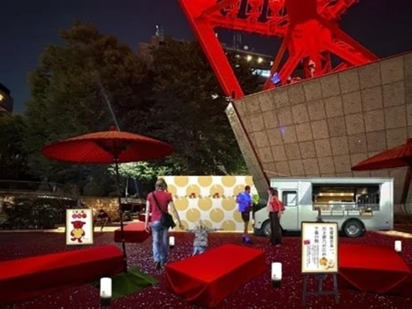 10月6日(月)14:00~21:30には、正面玄関前イベントスペース(屋外)に、野立て茶屋風のお月見にピッタリなスペースを設置。秋満月を使ったスイーツやスムージーをキッチンカーで販売し、産地直送の秋満月即売会のほか、千葉県マスコットキャラクター 「チーバくん」と、東京タワー公式キャラクター「ノッポン兄弟」も登場する。