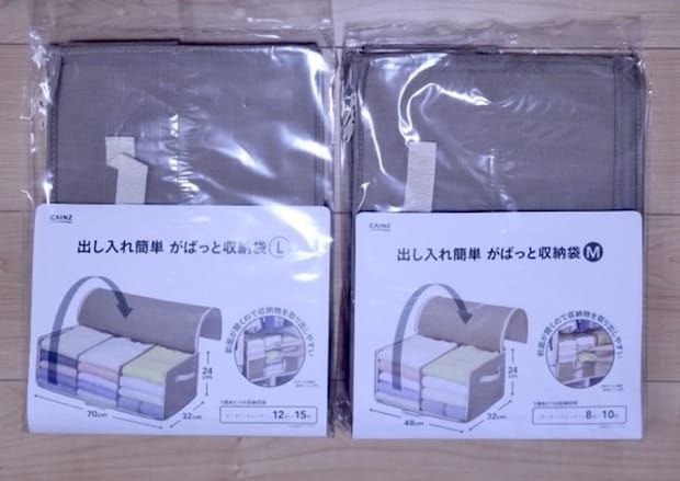 クローゼットの上段や棚の奥など、「手は届くけど、収納ボックスを置くにはちょっと大げさ……。」 そんな場所って意外とありますよね。 カインズの「がばっと収納袋」は、収納袋の気軽さと、ボックス並みのしっかり感を兼ね備えた名品でした! そのまま収納するにははばかられる布団やカバー類はもちろん、セーターやトレーナーなどの衣類収納にも大活躍♪ それでは詳しくご紹介します。