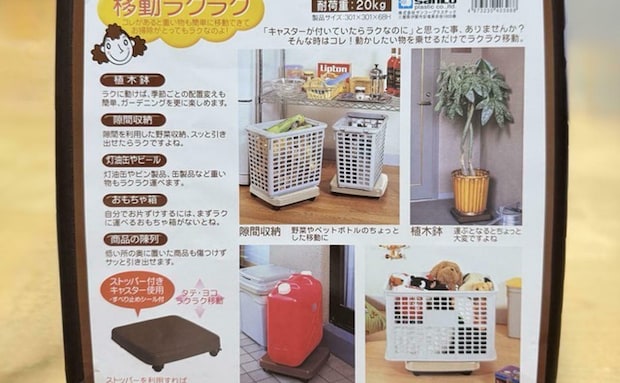 ラクゴロはコンパクトな平台車で、手持ちの収納ボックスや段ボールをそのまま乗せて、床の上をスーッと移動できるもの。