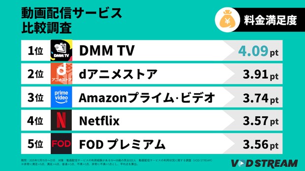 動画配信サービス比較_料金満足度(VOD STREAM)