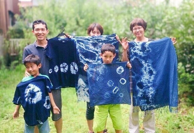輪ゴムや板などを使って好きなモチーフをデザインできるので、自分だけのオリジナル藍染を作れますよ! 藍染液が飛ぶことがあるため、汚れてもいい服装での参加がおすすめです。