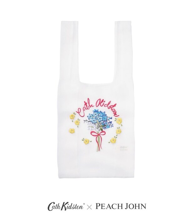 雑貨2型は、ルームウェアに合わせて楽しみたいルームシューズと、Cath Kidstonのロゴとブーケの刺しゅうをあしらったオーガンジー生地のバッグをラインナップ。