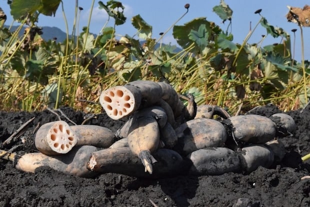 岩国の豊かな風土に育まれ、100年以上前から栽培している岩国れんこん。糸を引くような粘り、煮込むとホクホク、すりおろすとモチモチした食感が特徴のれんこんです。