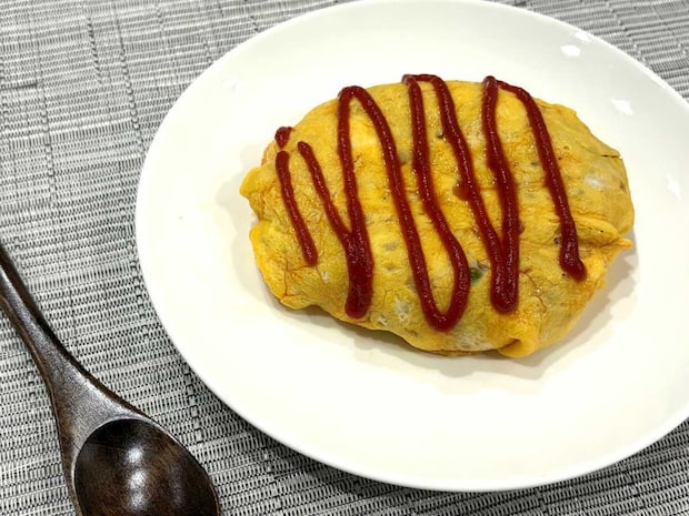 出来上がったオムライスがこちらです。ミックスベジタブルを使用すれば、手軽にオムライスのボリュームもアップできて便利でした♪