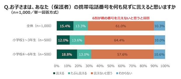 子どもが保護者の携帯番号を「言えないと思う」が6割超