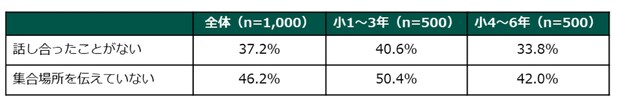 災害時に子どもがとるべき行動について、「話し合ったことがない」家庭が全体で37.2%。集合場所を「伝えていない」家庭も46.2%に上りました。