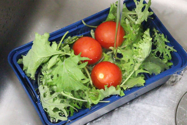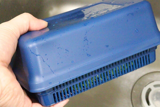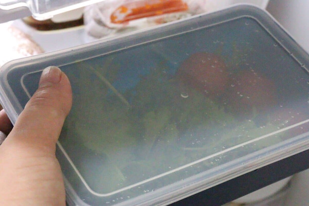 水を切る際は、容器をかぶせて蓋代わりにするのがおすすめ。