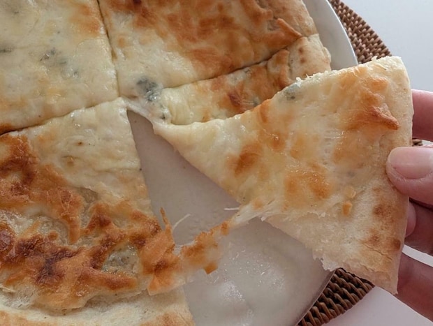 「ナポリ風ピザ 4種のチーズ」は、437円(税込)とは思えない本格派。モッツァレラやゴルゴンゾーラなど4種のチーズが贅沢に使われ、焼くだけで芳醇な香りと抜群のチーズ感が口いっぱいに広がります。