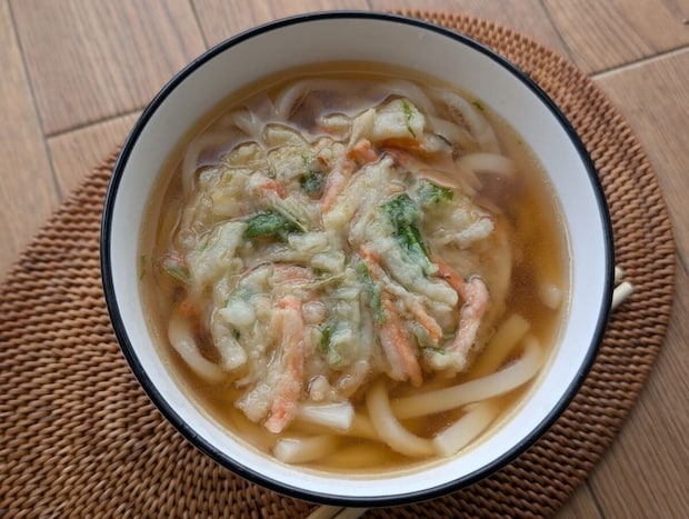 うどん、出汁、具材が一体化しており、忙しい日の救世主。