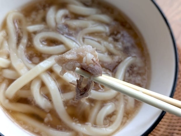 袋から出して鍋に入れるだけで完成する、手間ゼロの「肉うどん」です。