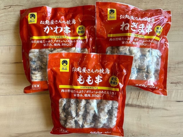 トライアルオリジナルの焼鳥は皮、もも、ねぎまの3種類。