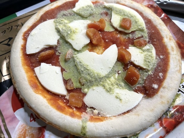 一般的な冷凍ピザにありがちなパラパラのシュレッドチーズではなく、塊でドーンと乗っているのが特徴。