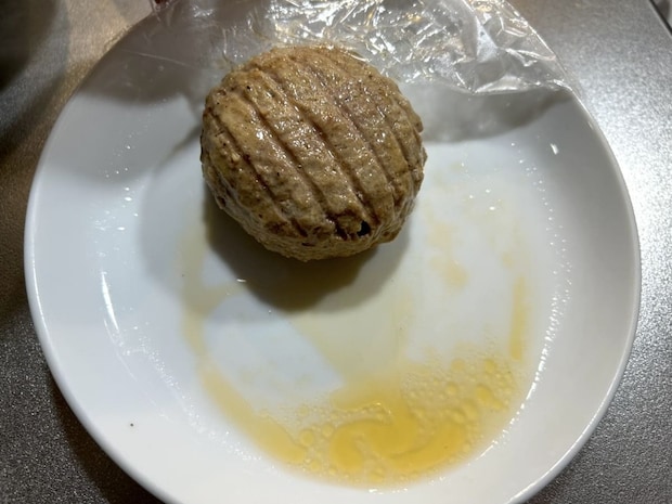 調理は超簡単で、ハンバーグ1個を耐熱皿に移してラップをし、600Wの電子レンジで3分10秒温めるだけ。