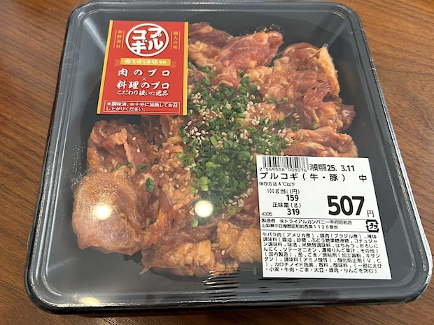 「こはく本舗監修 プルコギ」は、精肉コーナーで販売されている調理用の味付け肉です。
