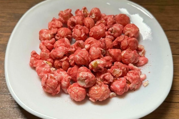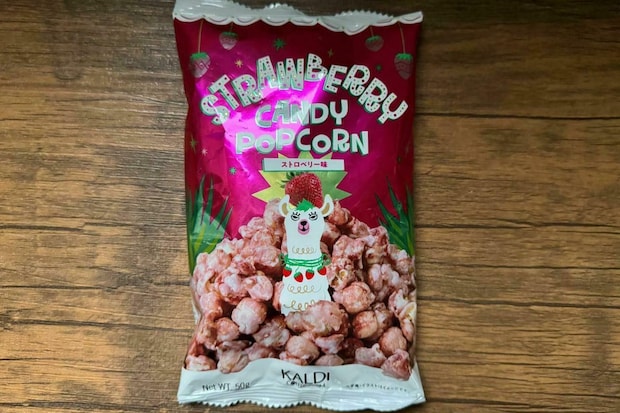 「ストロベリーキャンディポップコーン」は、目を引く濃いピンク色とかわいいパッケージが目印の一品です。