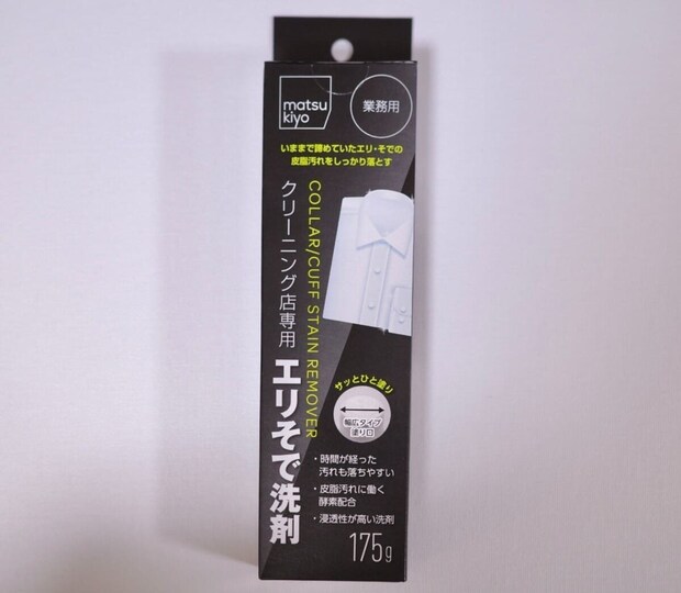 「matsukiyo」から発売されている「クリーニング店専用 エリそで洗剤」は、時間が経った汚れもしっかりケアできる名品!