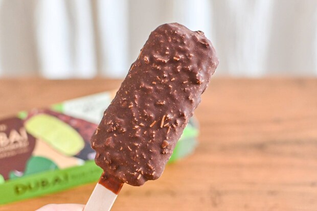 なかのピスタチオアイスはやさしい甘みでくどさがなく、ビターなコーチングチョコレートとバランス抜群。少しねっちりとした口あたりがより濃厚さを引き立てます。