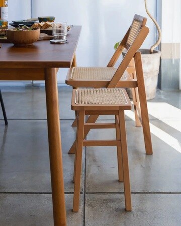 「アム スツール」は、コンパクトで持ち運びしやすいサイズのスツール。座るだけでなく、サイドテーブルや飾り棚としても使える。