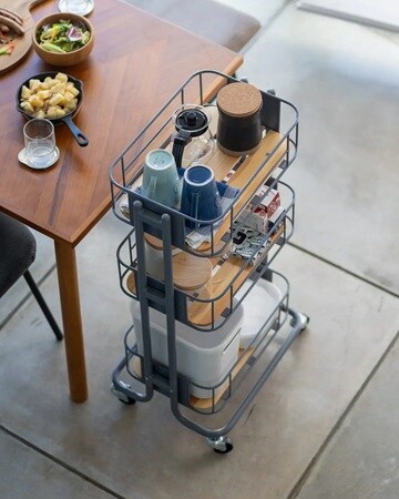 「ビーワイケージ ワゴン」は、キッチンやリビング、デスクサイドなど、場所を選ばず使えるシンプルなワゴン。