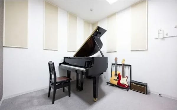 防音環境のレッスン専用室にグランドピアノやエレクトーンが配置されており、快適に楽しく音楽に触れ合える。