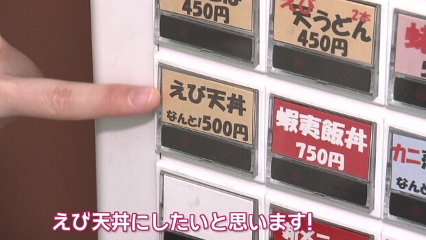 券売機でひときわ目を引く「えび天丼 500円」の文字。