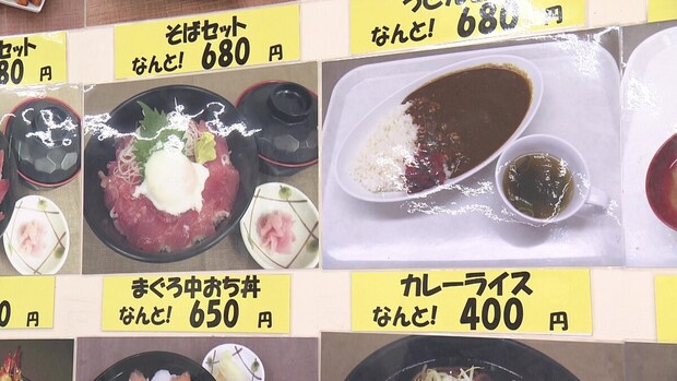 馬鹿値食堂ではこのほかにも、カツ丼:500円(味噌汁・漬物付き)カレーライス:400円、海鮮丼750円など激安メニューがいっぱい!