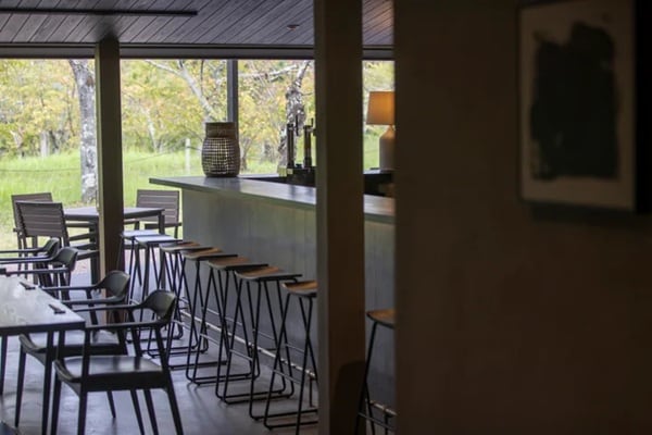 一面に大きく切り取られた窓からは、円山公園に広がる四季折々の景色を一望できる。昼と夜で移り変わる景色を眺めながら、ゆっくりと寛ぐテーブル席、公園に溶け込むテラス席、カウンター席など、多様なシーンに寄り添う席が用意されている。
