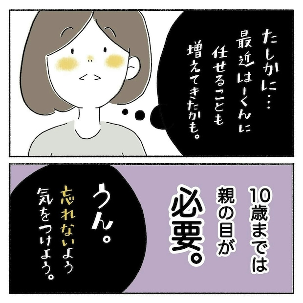 また、今回のできごとを教訓に「親の目が必要」ということに気づきました。それに、洗髪やドライヤー、歯の仕上げ磨きなどは、親子のコミュニケーションにもなりますね。子どものやる気を削がないようにしつつも、大切なわが子を守らなければいけませんね。