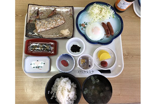 松川浦で宿泊したホテルのあさごはん。新鮮なお魚と、香り高いあおさの入ったあたたかなお味噌汁。朝から、からだもこころもあたたまる口福いっぱいの朝