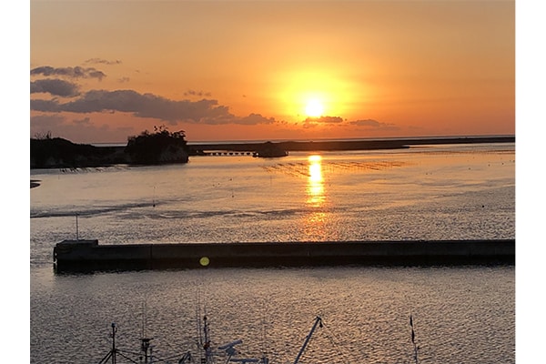松川浦の朝日。「小松島」とも呼ばれる松川浦は風光明媚な場所でした