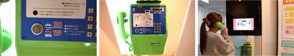 119通報体験中の写真と公衆電話の緊急用ボタン