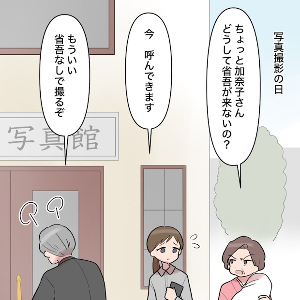 家族写真撮影当日、省吾さんは伝えた時間になっても現れないので義母は私に当たりました。結局イライラしていた義父がもう待ちきれずに省吾さん不在のまま撮影することになりました。その日、最後まで省吾さんが現れることはありませんでした。