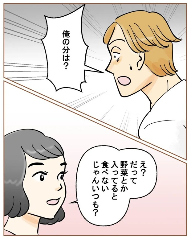 驚いたように「俺の分は?」と聞くツカサに「え?だって野菜とか入ってると食べないじゃん、いつも」とこちらこそ驚いたように伝えました。