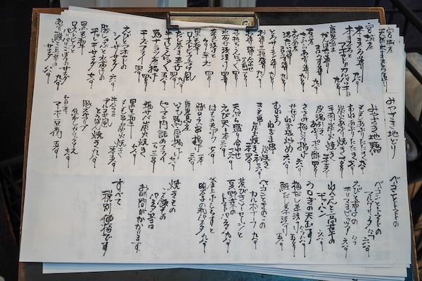 そして、席につくとさりげなく手渡される手書きのメニュー表。今日選ばれた魚や野菜が、丁寧な筆致でつづられている。声に出して選ぶたび、ちょっとずつ店主との距離が近づいていく気がして、それがまた心地いい。