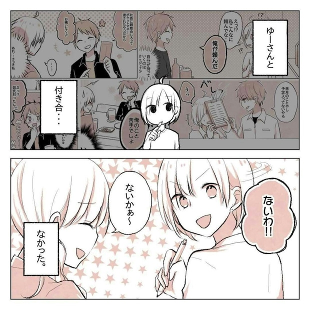 後に恋人同士となる2人のなれ初めが描かれた作品の中には、りんさんの気持ちの変化が丁寧に描かれています。苦手な先輩という線引きをしていたゆーさんの優しい一面に触れる度に、りんさんの笑顔が増えていきます。そして、元カレとのことで心が沈んだとき、「一緒に笑いたい」と思ったのはゆーさん。りんさんは、気づけばそばにいてくれるゆーさんの存在が、自分にとって落ち着く相手だと感じるようになるのです。