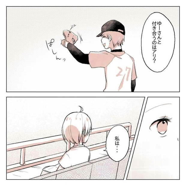 りんさんは、草野球の試合をチームメイトのシゲさんの彼女と一緒に観戦中。シゲさんと彼女のなれ初めを聞いたり楽しく話していると、その彼女から「ゆーさんと付き合うのはアリ?」と聞かれて…。