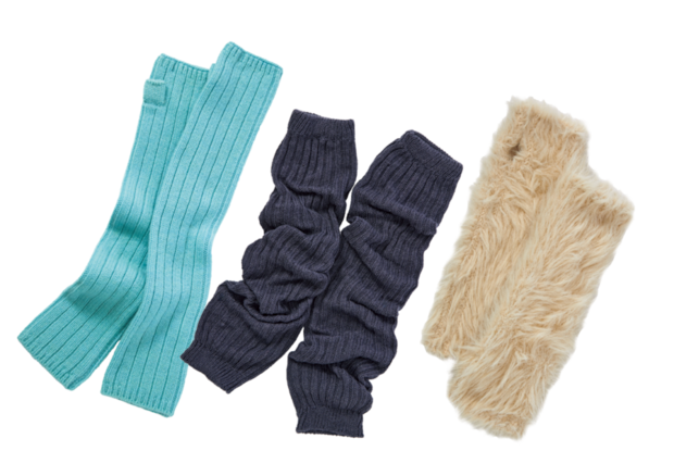 アームウォーマー左から:親指部分は第一関節まで覆われた気のきいたデザイン。¥25,300(y YO)、適度なボリュームがGOOD。¥1,210(靴下屋/タビオ)、長い毛足で見た目も暖か。¥5,500(オリエント ミリナリー)