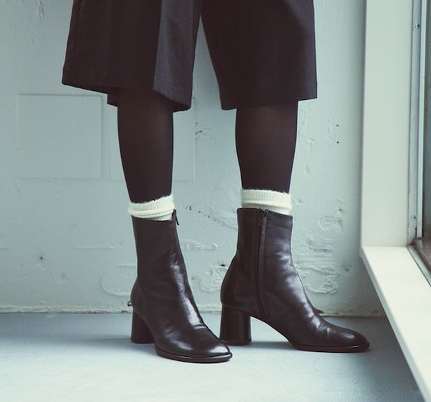タイツ¥1,760、ソックス¥1,980(共に17℃/17℃ by Blondoll 横浜ジョイナス店)、ブーツ¥47,300(ファビオ ルスコーニ/伊勢丹新宿本店 本館2階 婦人靴)、ハーフパンツ¥33,000(ハイク/ボウルズ)